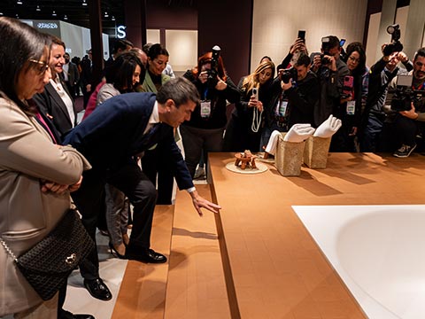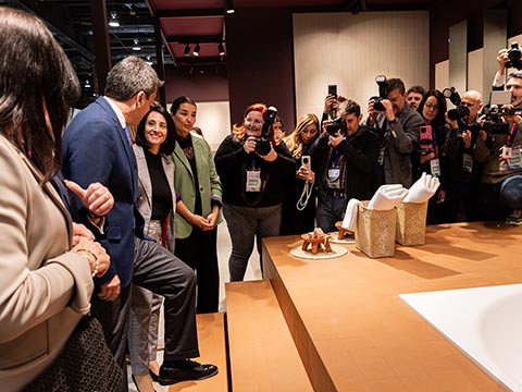 Während der Präsentationszeremonie besichtigte Präsident Mazón in Begleitung der übrigen regionalen Behörden, die an der Veranstaltung teilnahmen, den Stand von Arcana Cerámica und gab eine positive Bewertung aller von dem Unternehmen vorgestellten neuen Produkte ab.